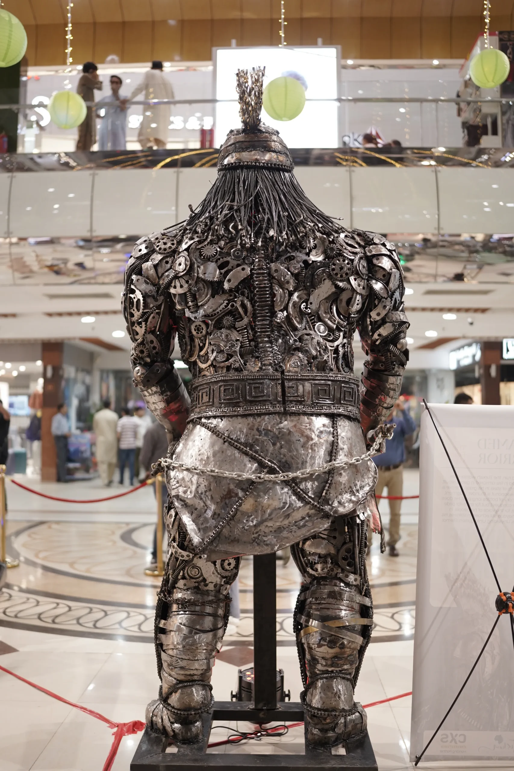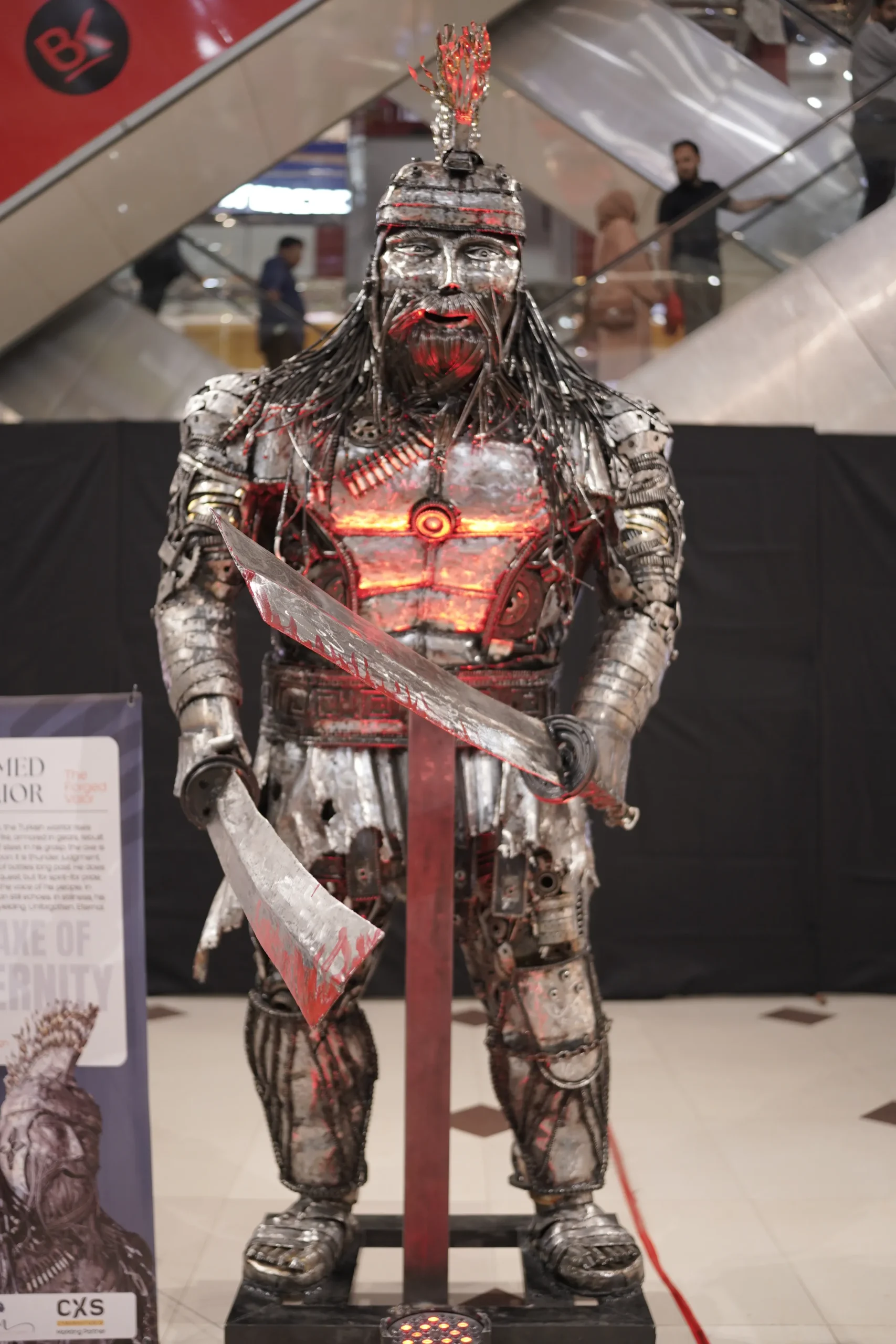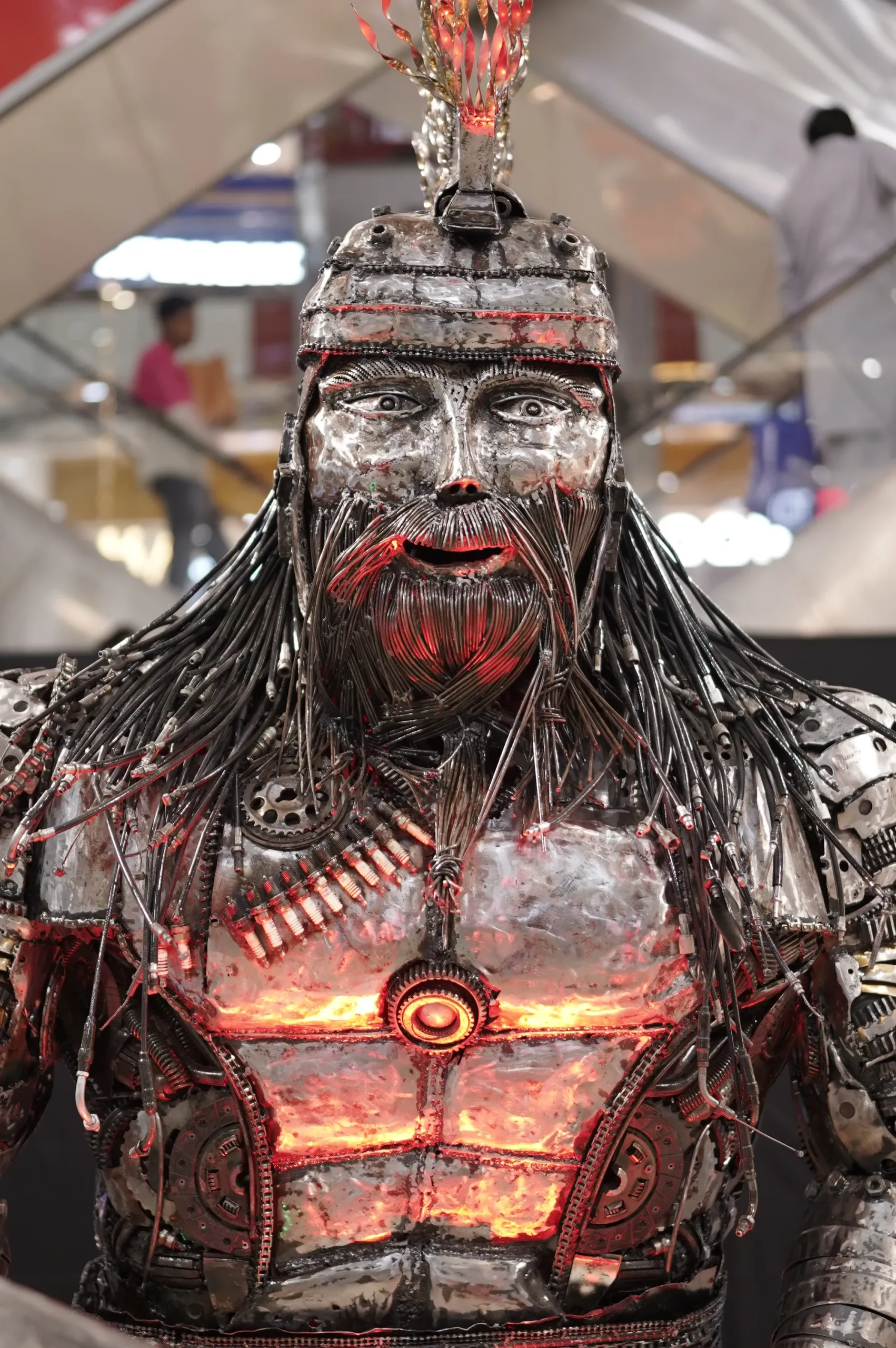 Inspired by the legendary warriors of medieval Anatolia, this life-size sculpture rises 9.5 ft high as a powerful emblem of strength, valor, and faith. Forged from recycled automobile parts, gears, engines, and suspension elements, the Turkish Warrior transforms raw machinery into a timeless guardian of heritage.